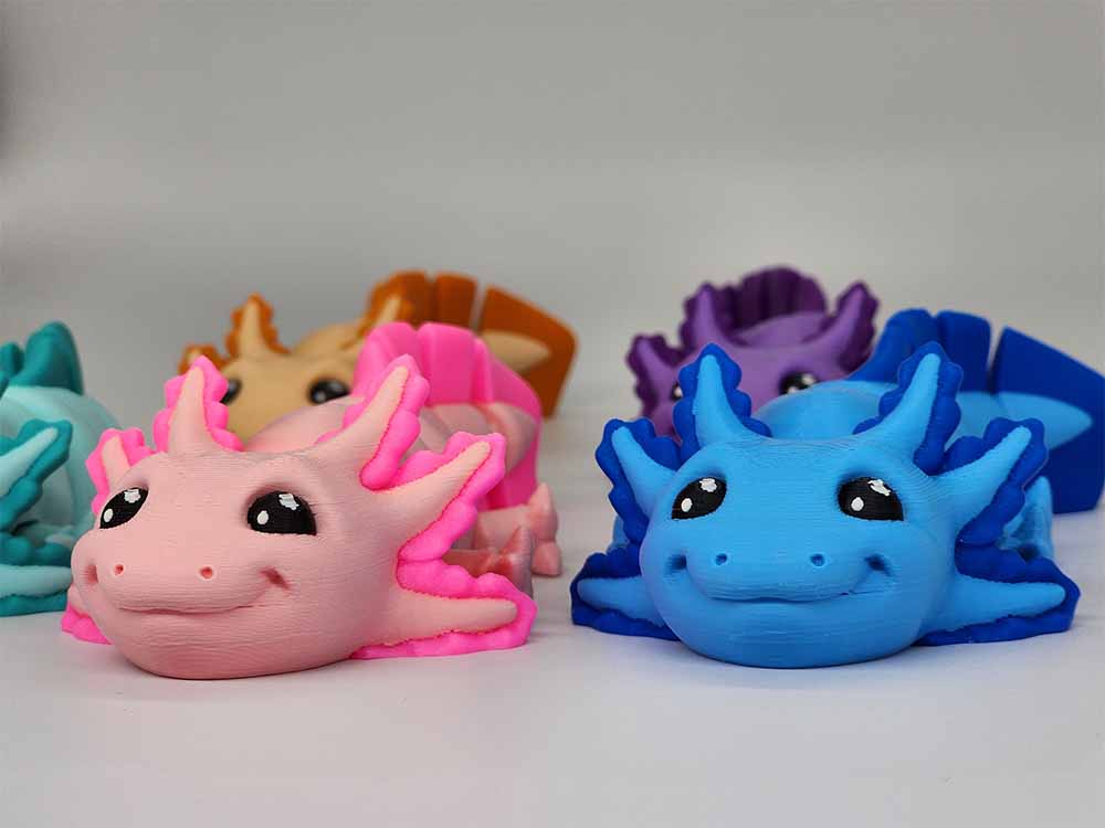Super cute Axolotls that articulate on all the joints down the body. Heads tilt up and all four feet articulate. Comes in a variety of colors.