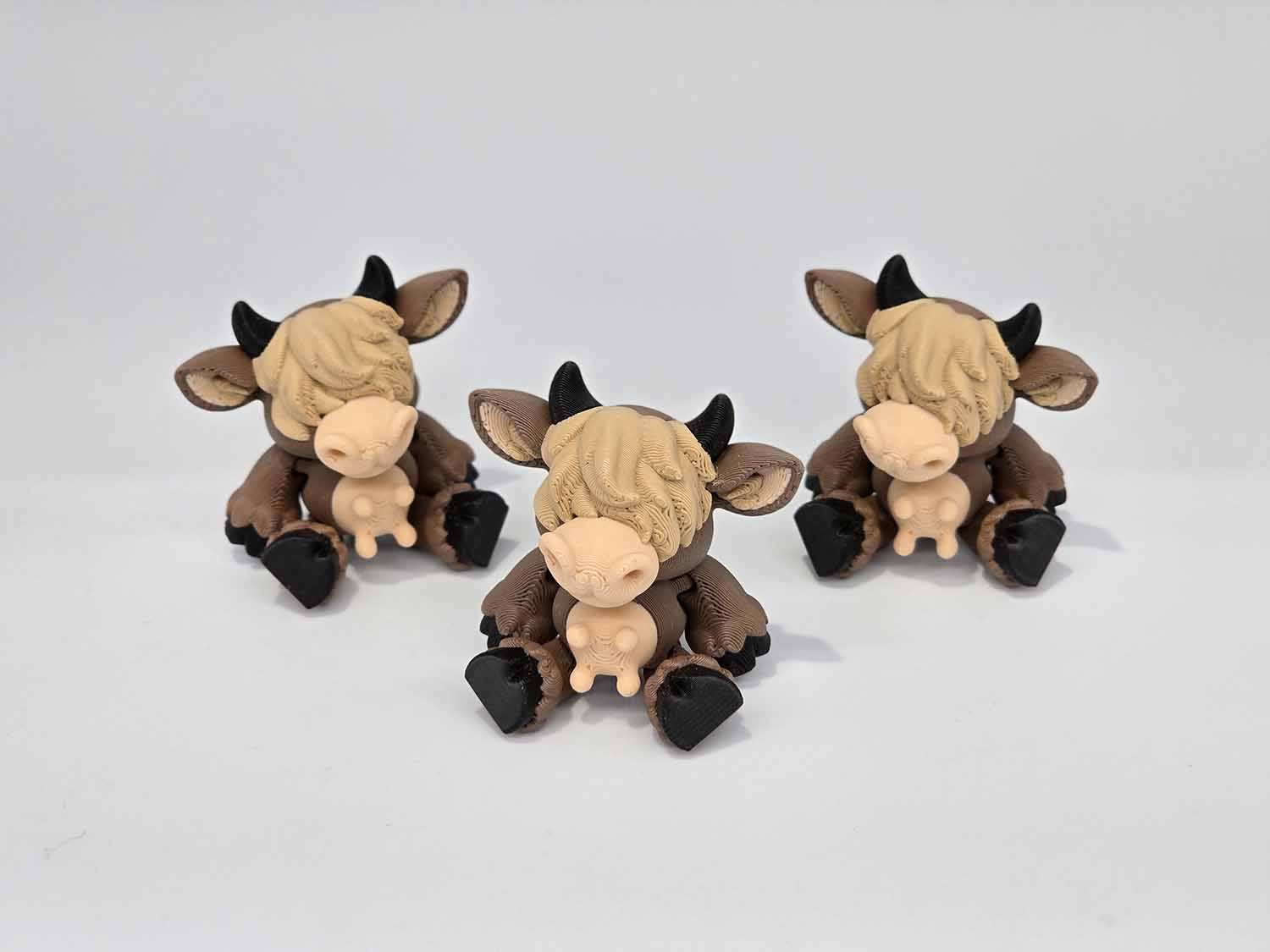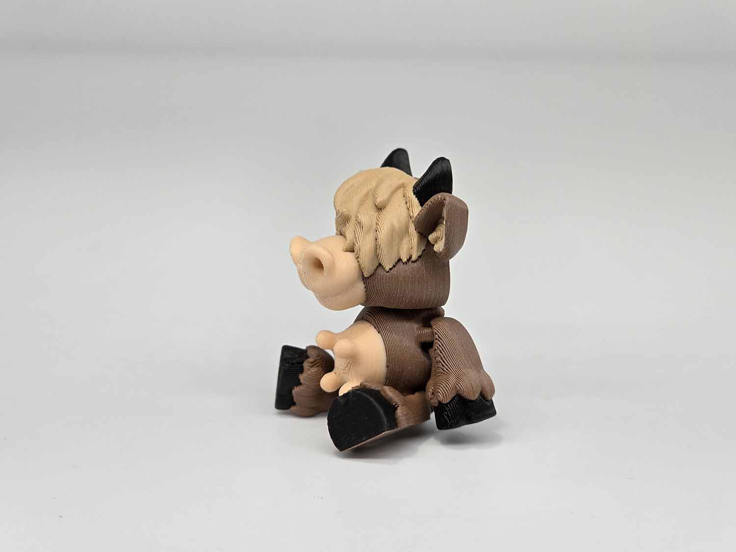 Cute little Baby Highland Cow in a sitting position. Articulates on all 4 legs and the head. Comes in color as shown.