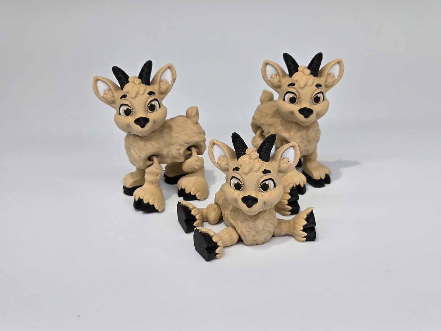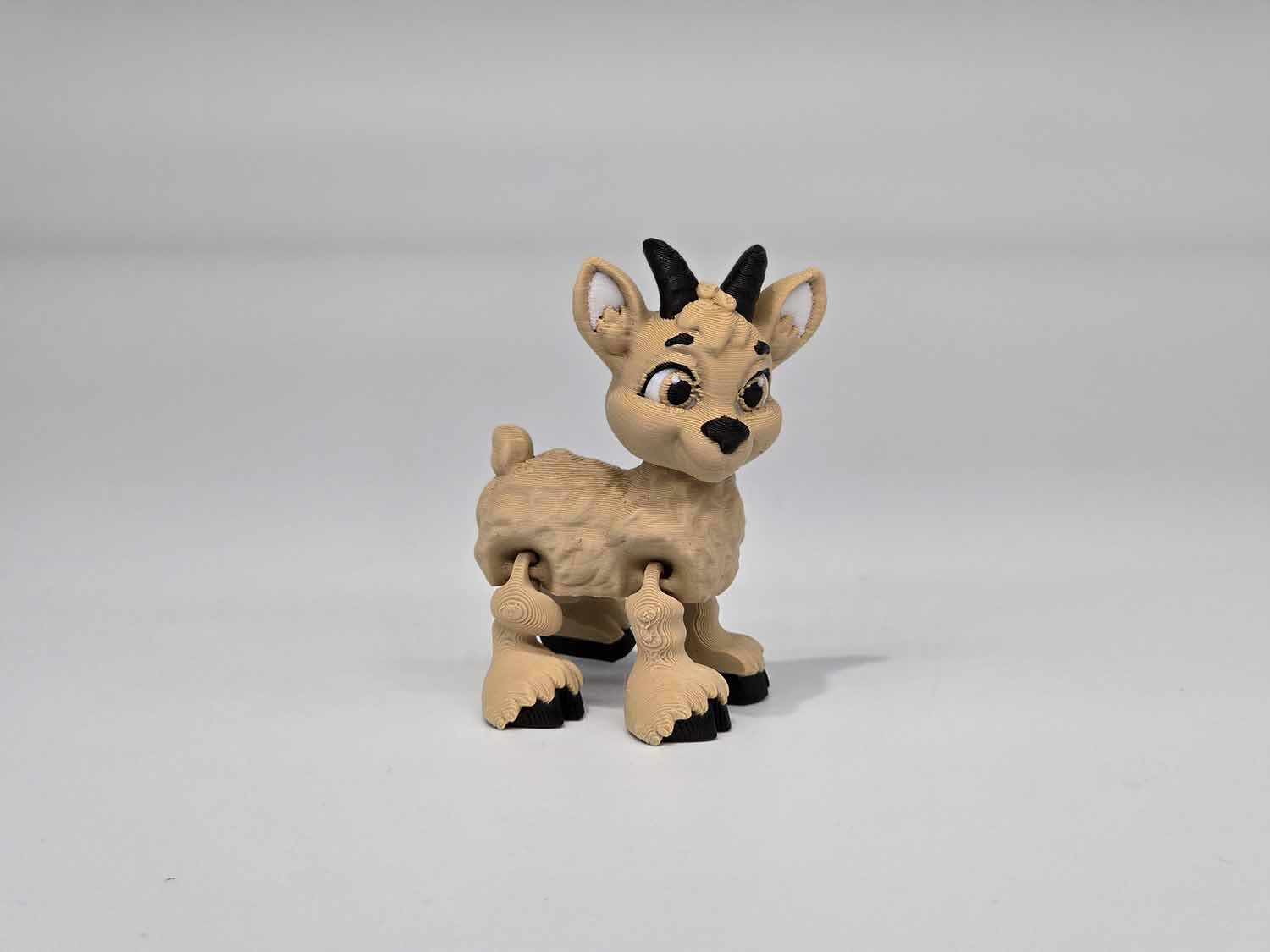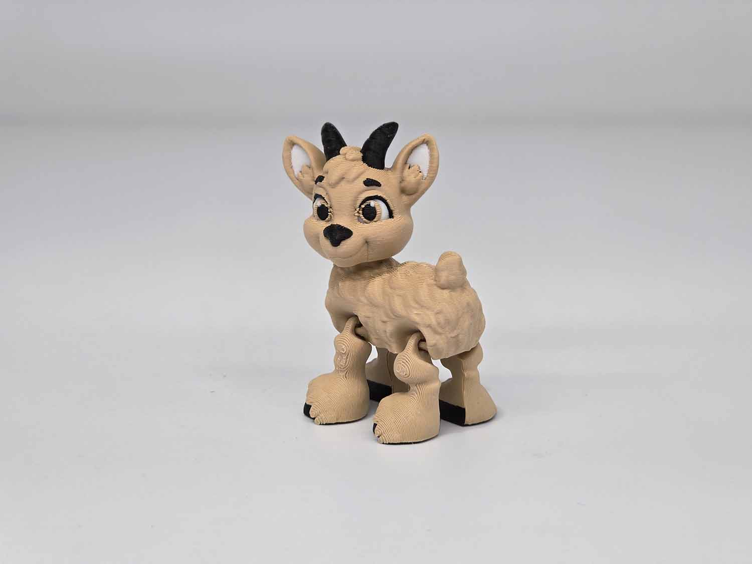 Articulates on its 4 legs and the head turns 360 degrees. Comes in color as shown.