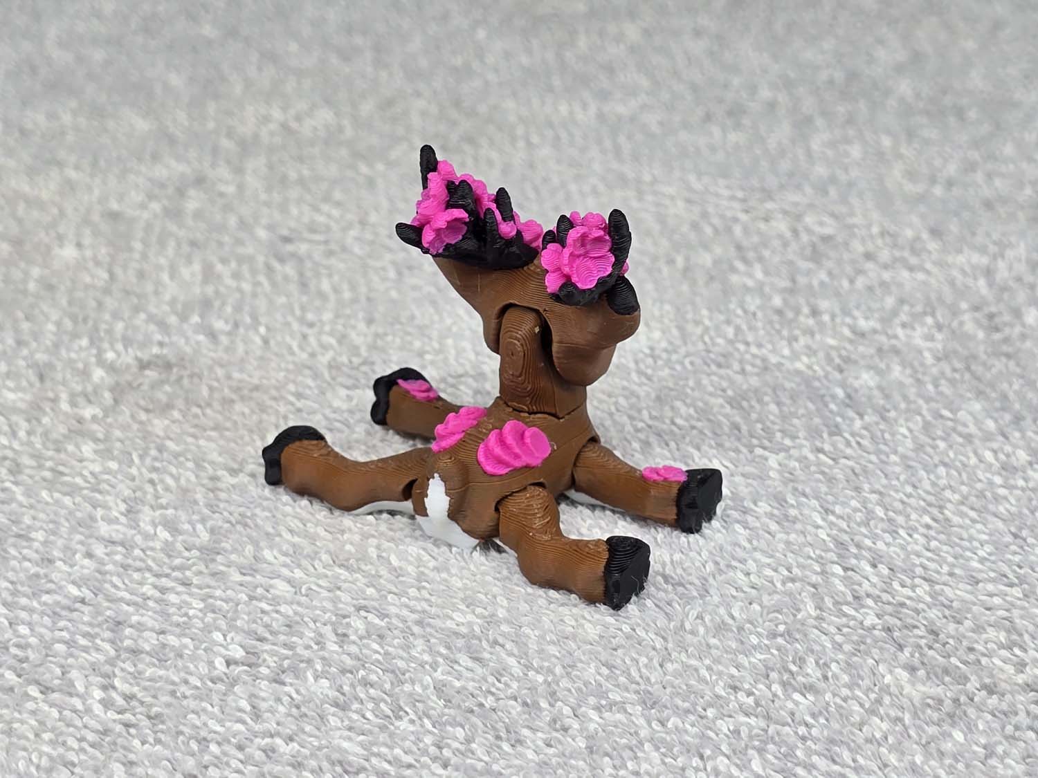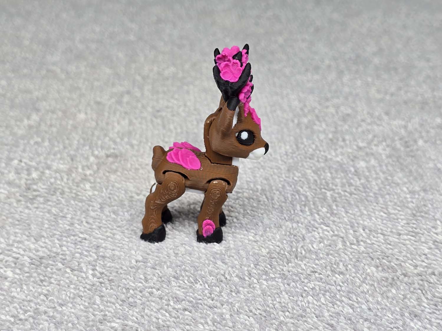 Articulates on all 4 legs. The head moves up and down. Fits in the palm of your hand. Comes in color as shown.