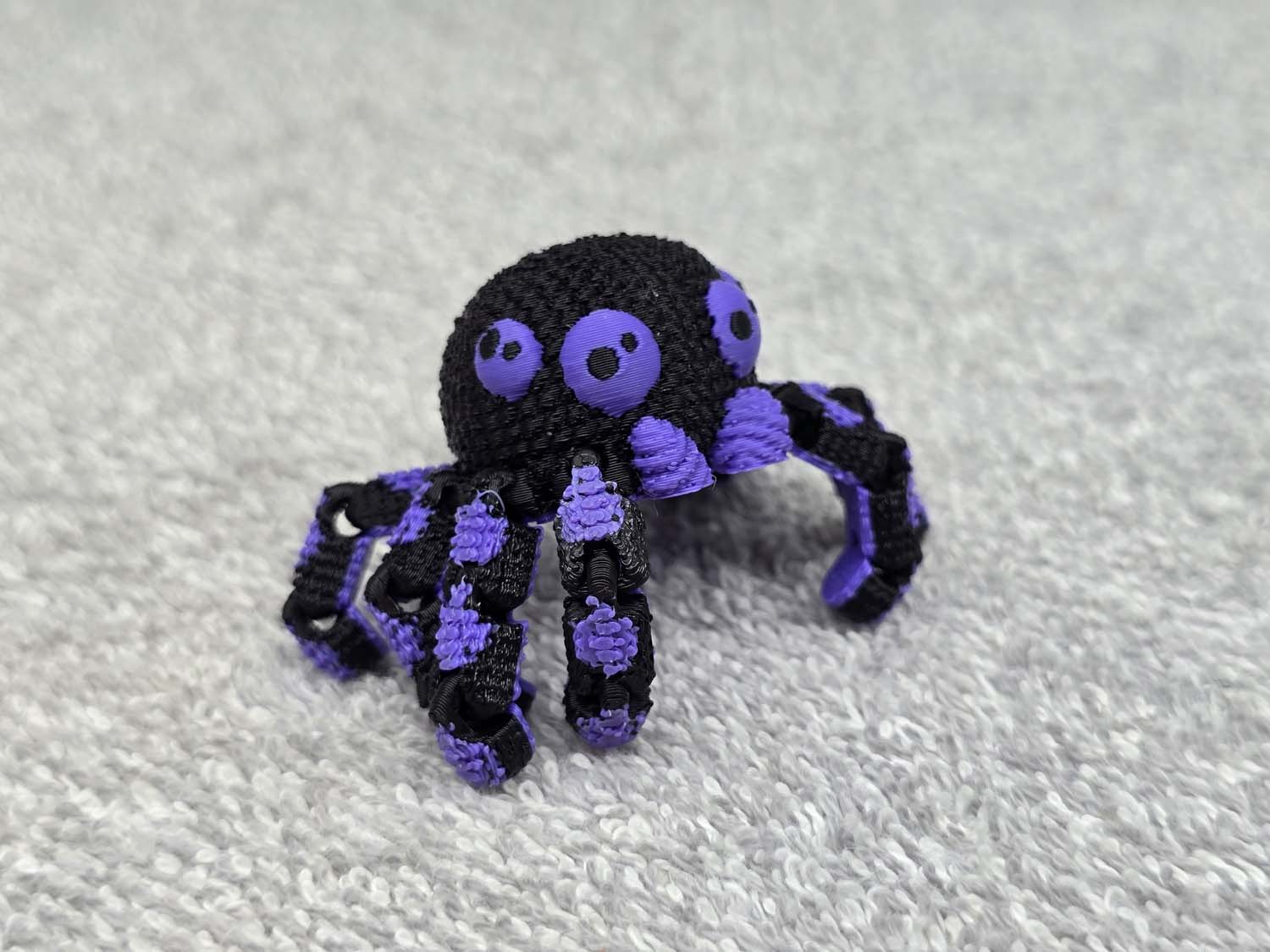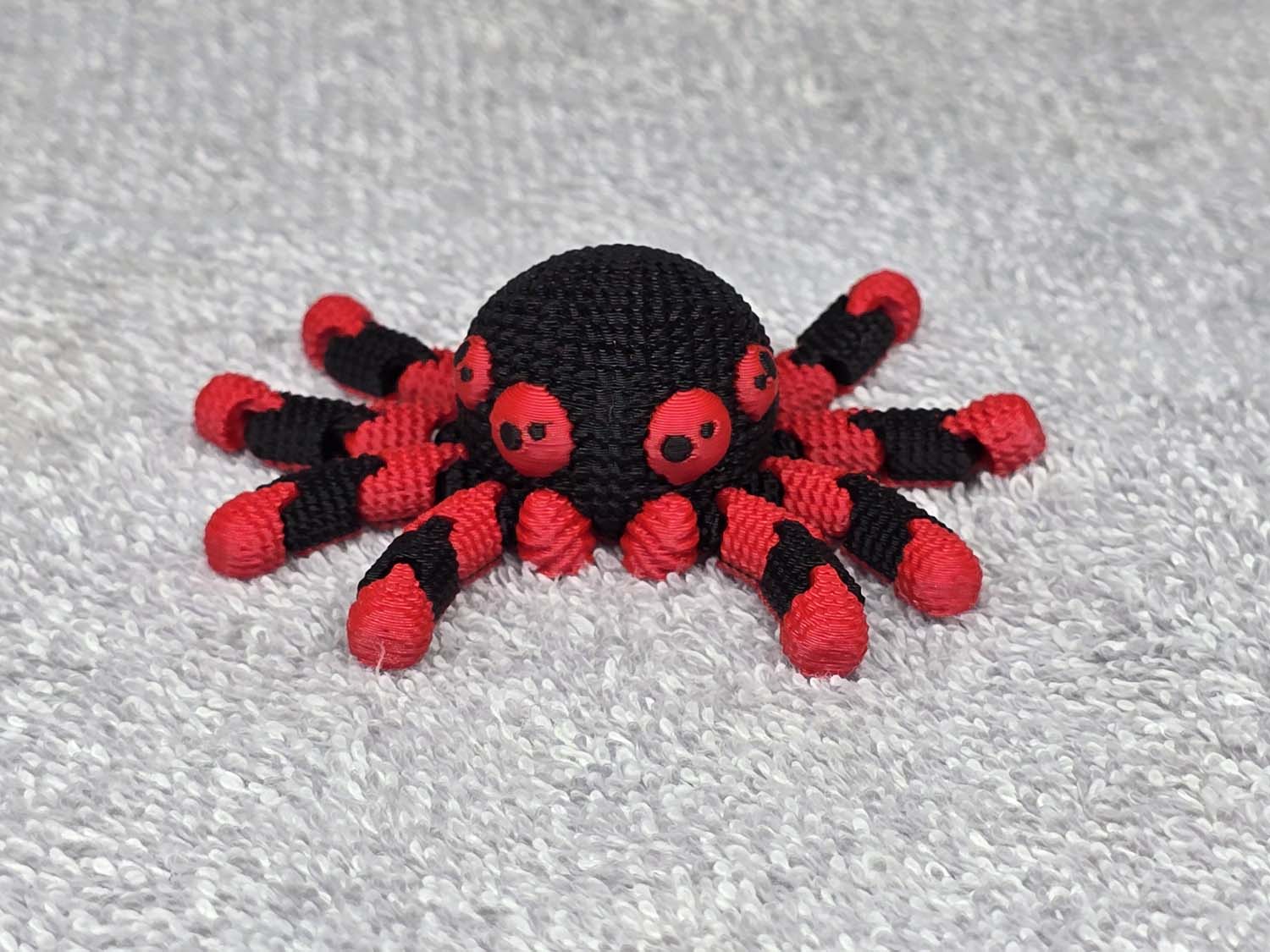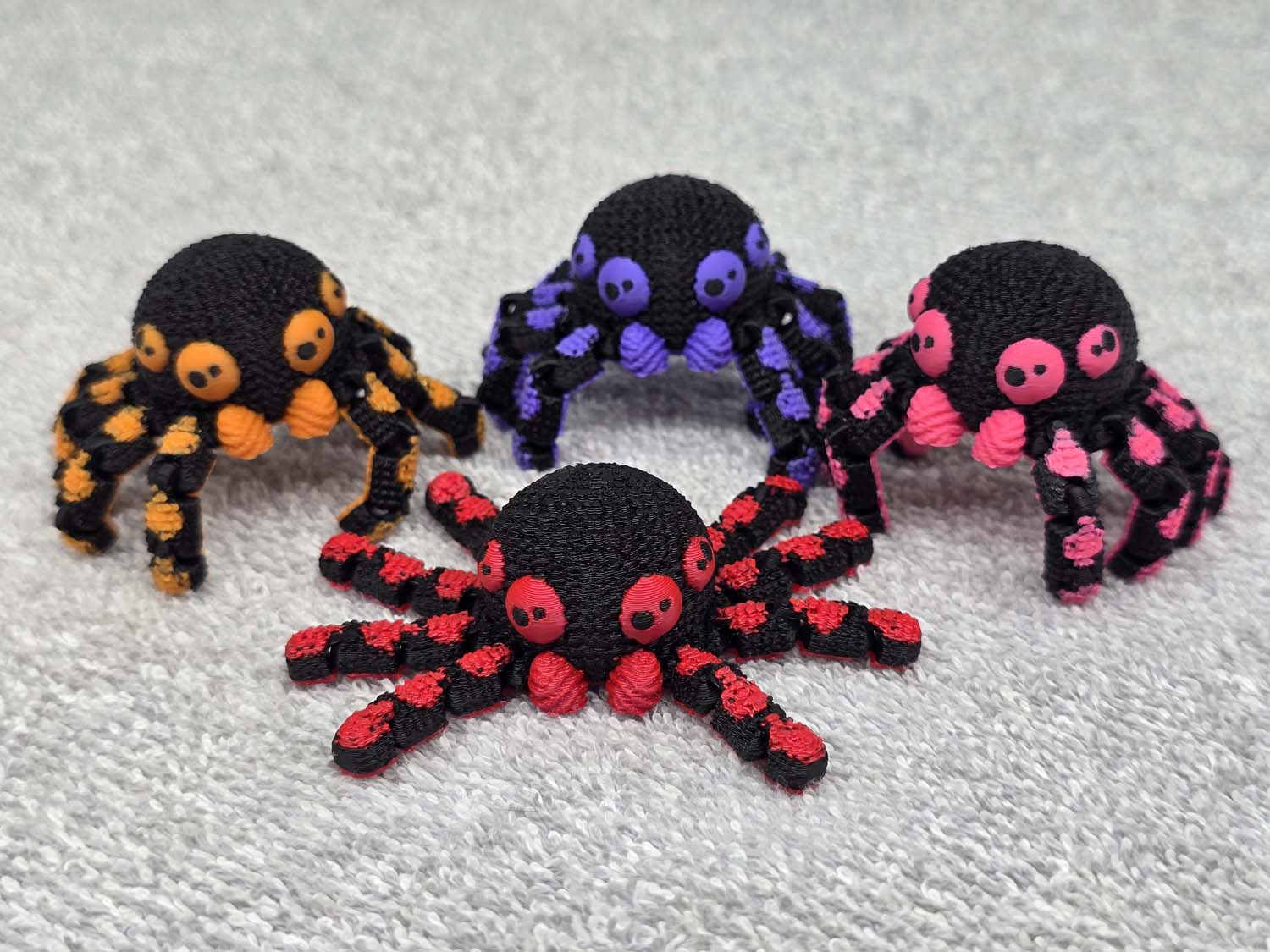 Cute spider that wears a crochet texture and articulates on all 8 legs. Multiple color combinations. Fits in the palm of your hand.