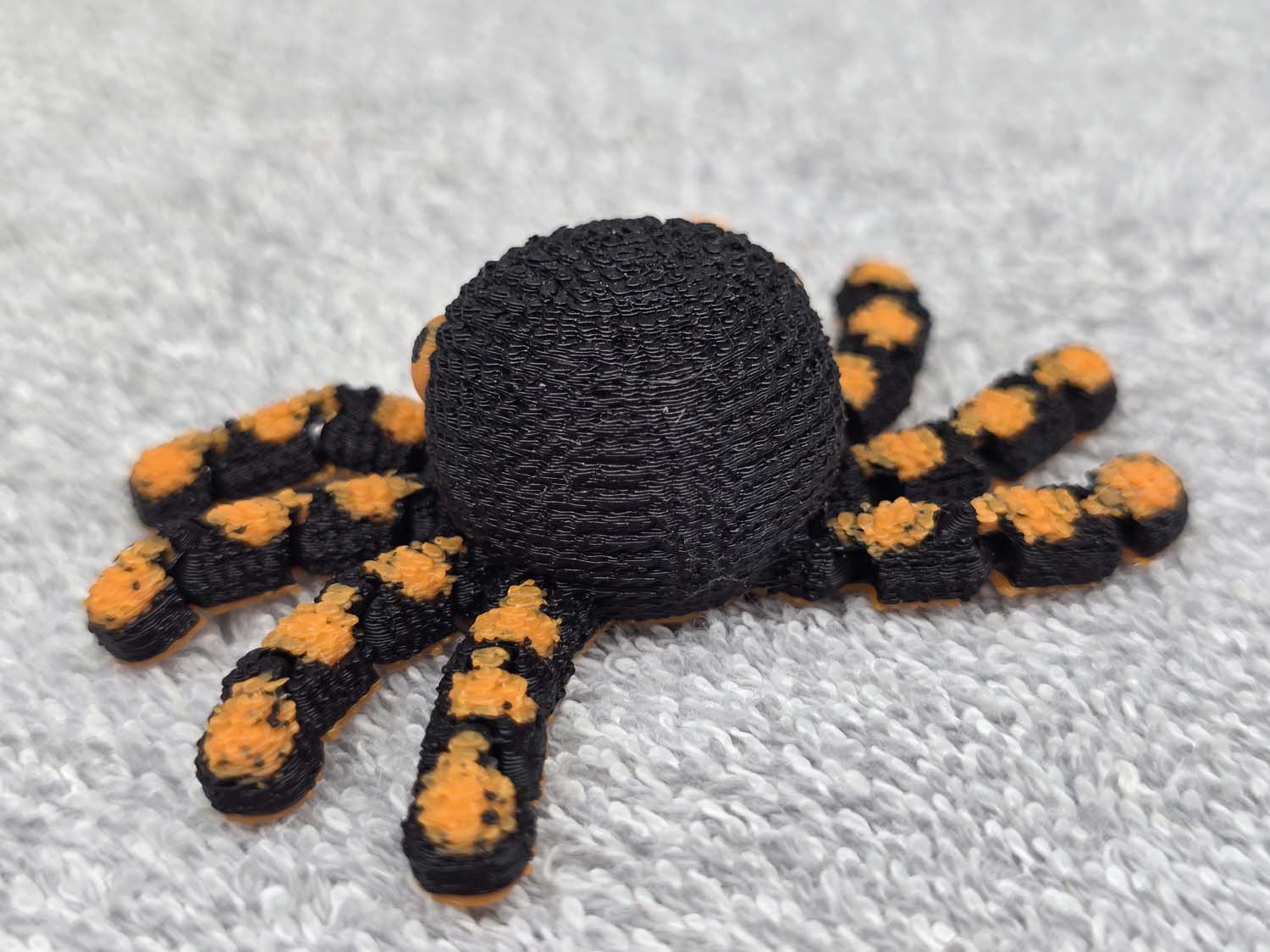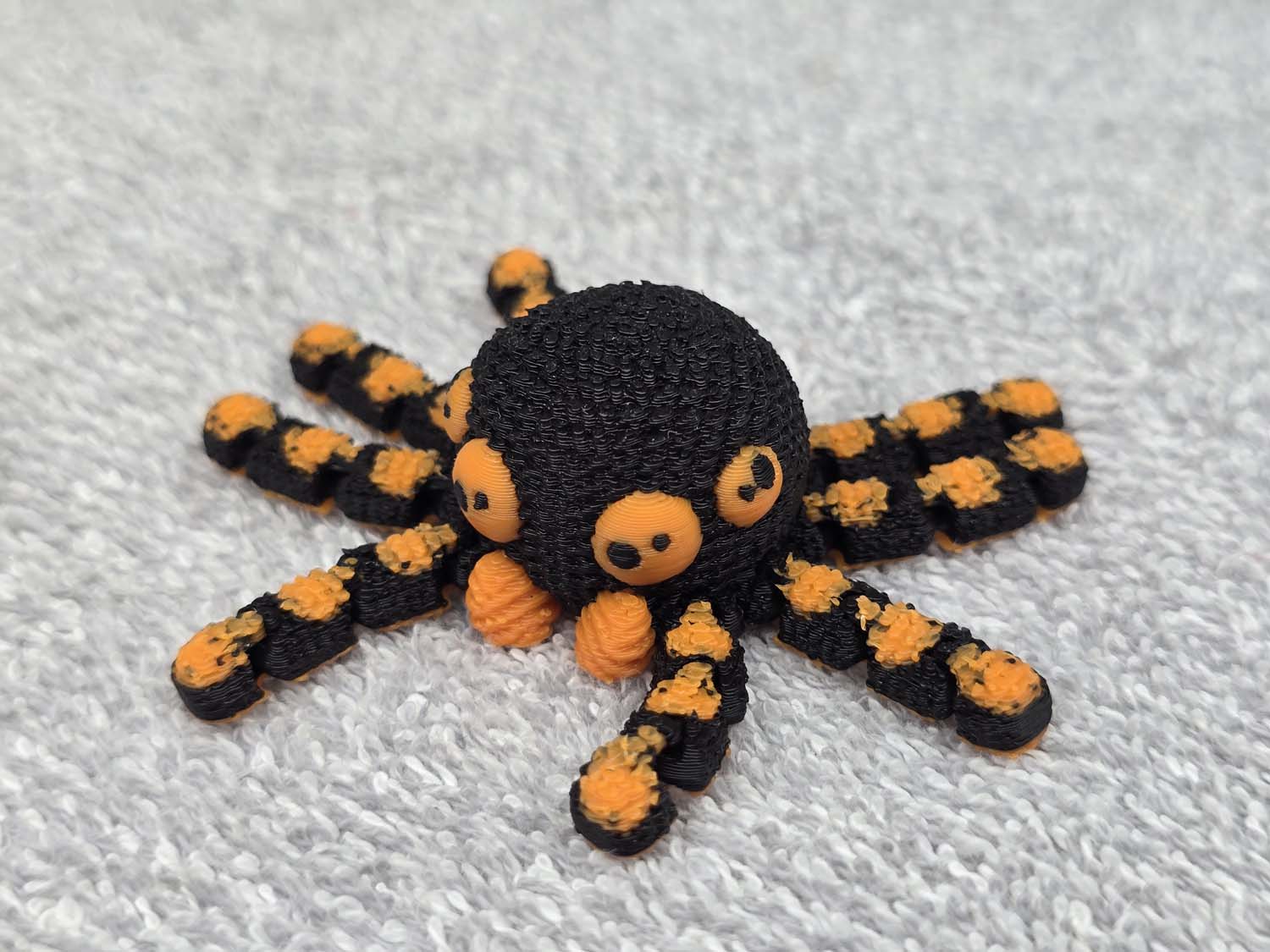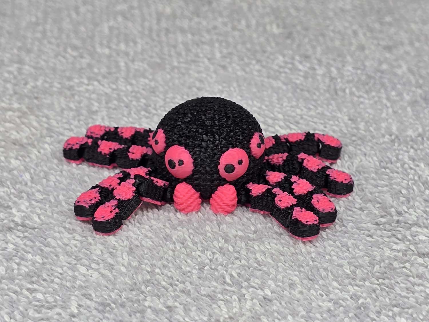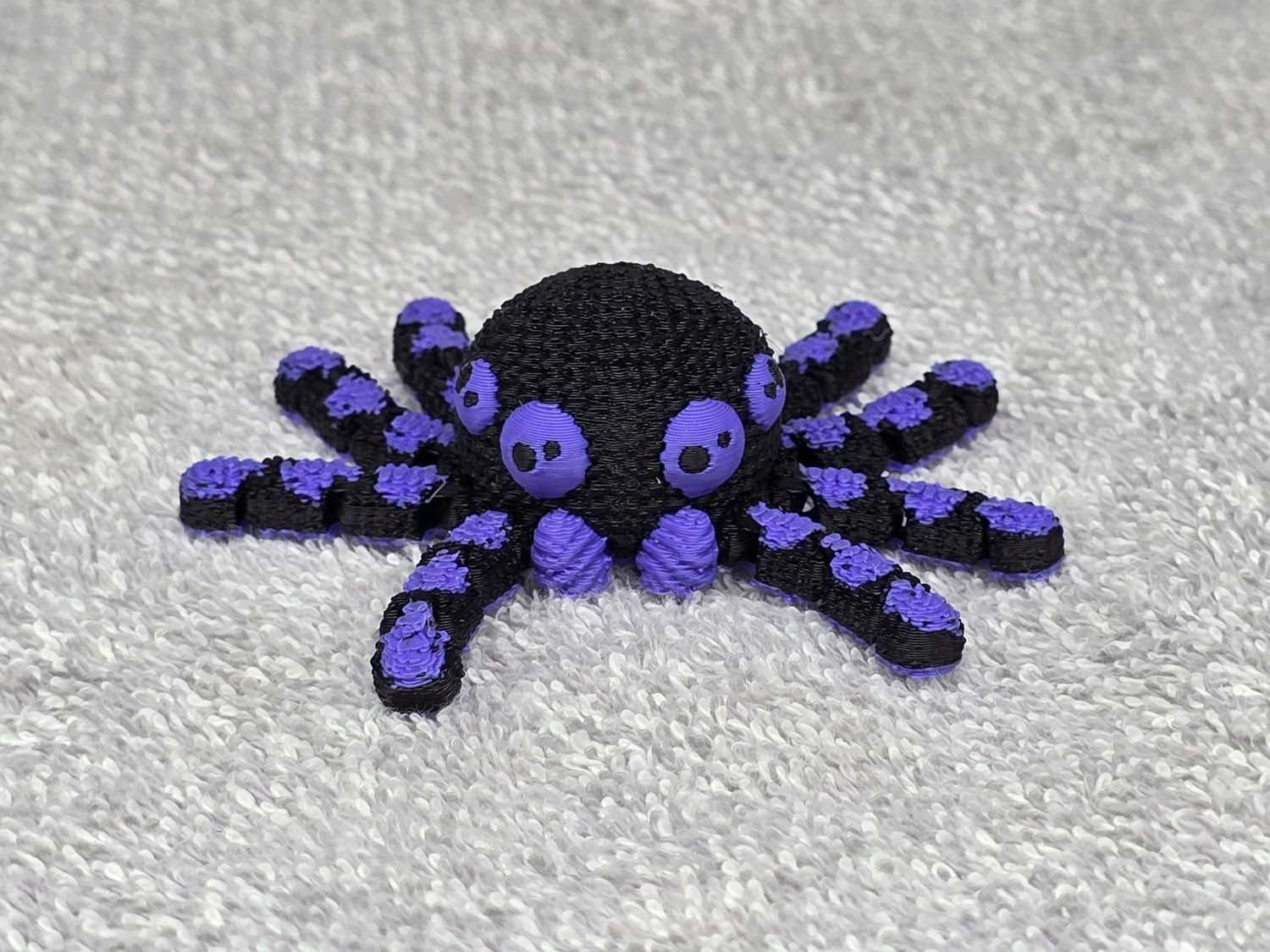 Cute spider that wears a crochet texture and articulates on all 8 legs. Multiple color combinations. Fits in the palm of your hand.