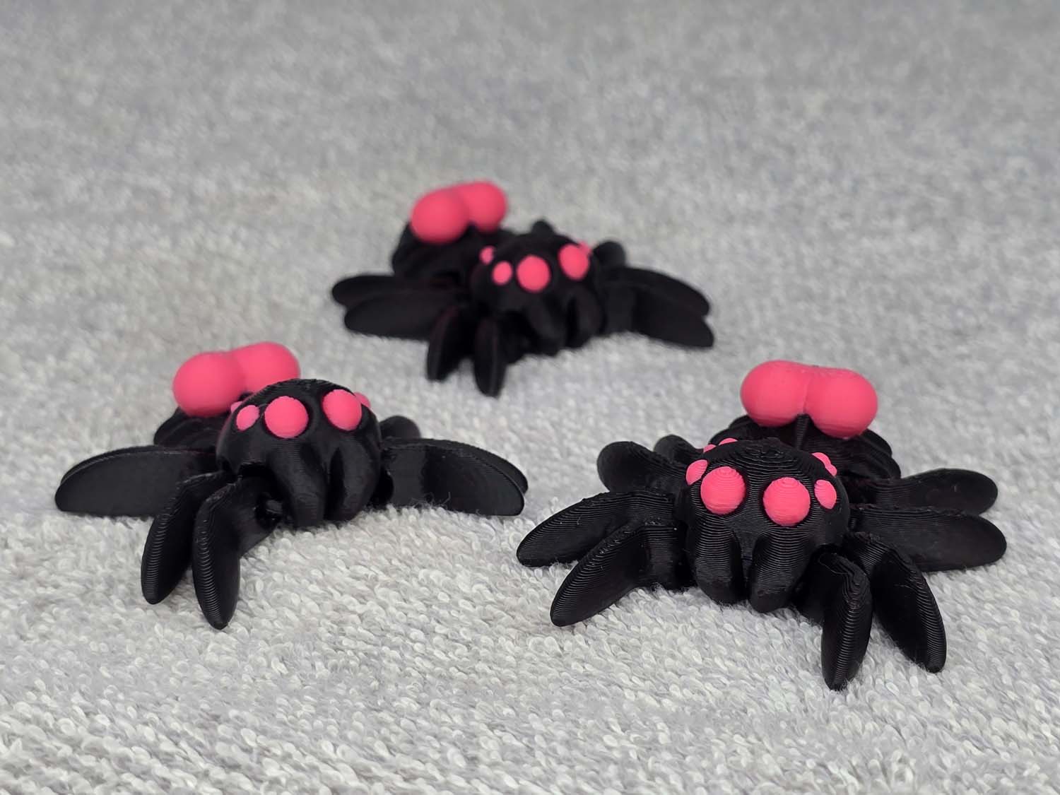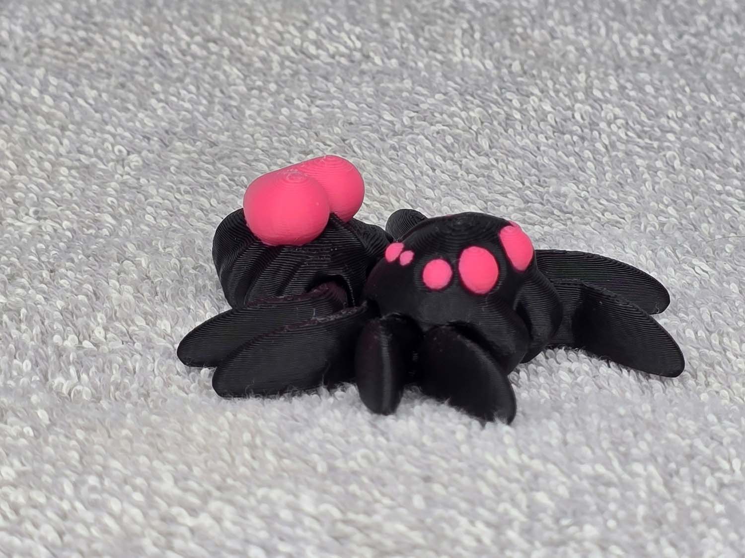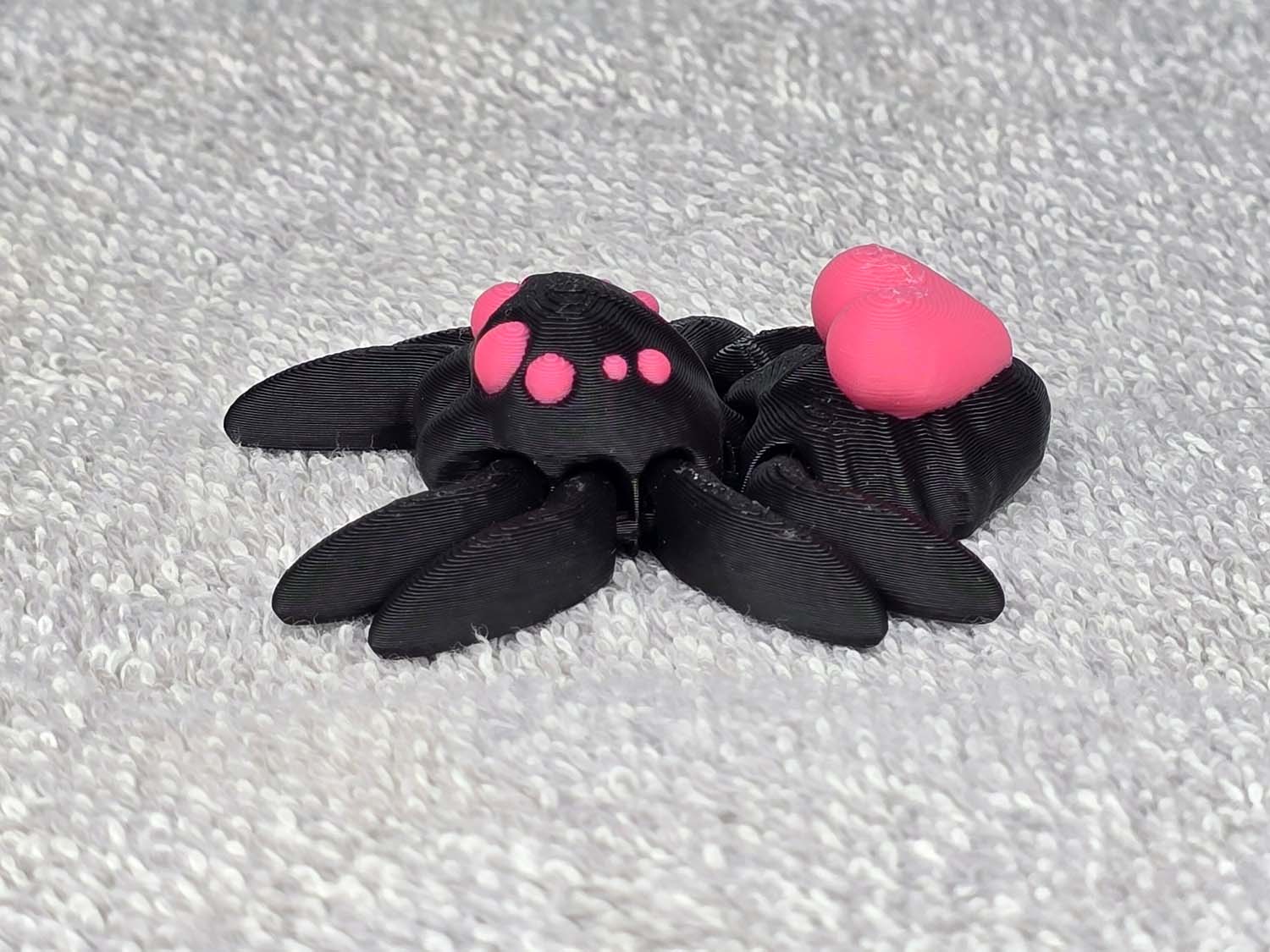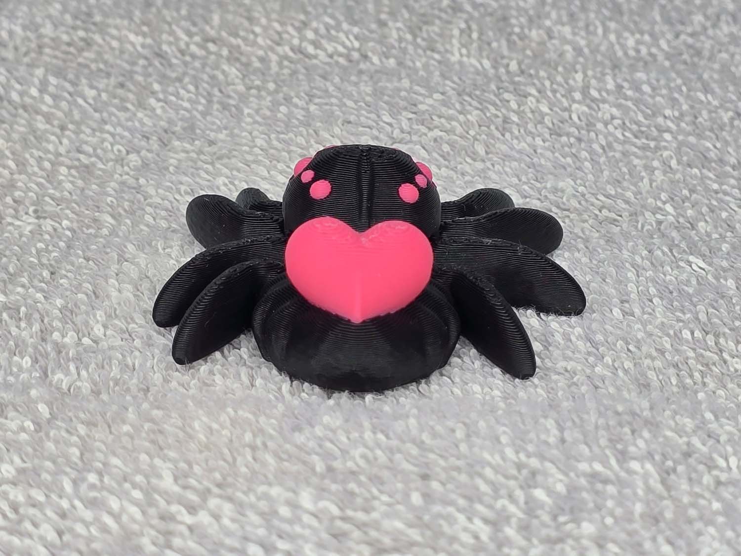 Spider with a Heart on its’ back. Articulates on all 8 legs and the back sack. Fits in the palm of your hand. Color comes as shown.