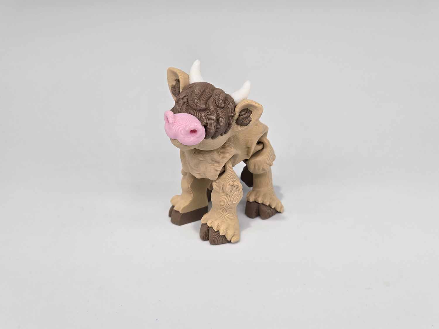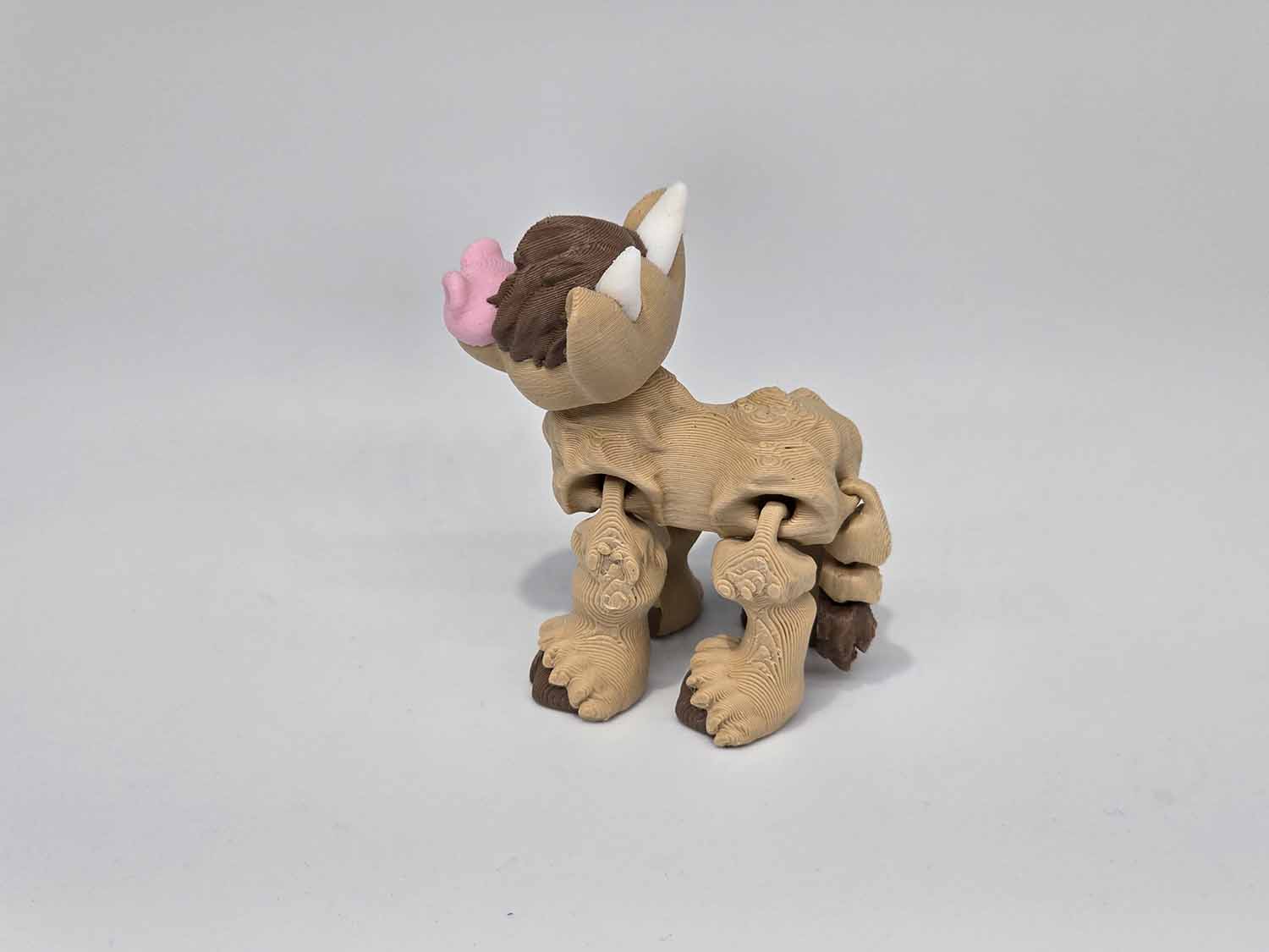 Articulates on all 4 legs, the tail and the head. Comes in color as shown.