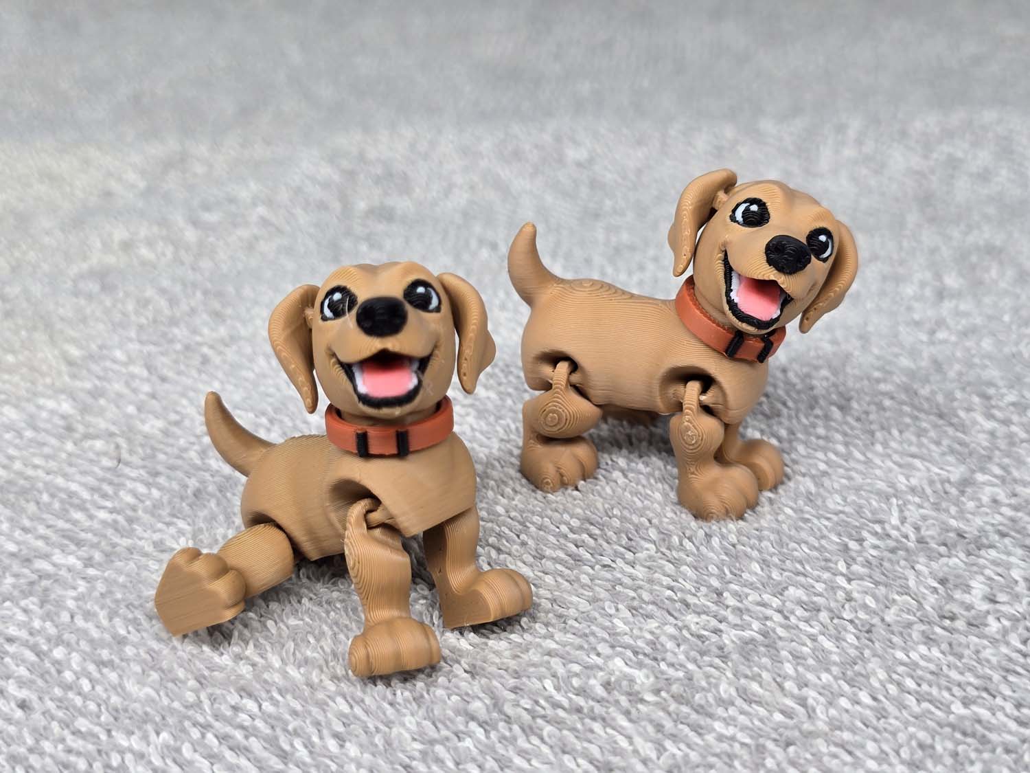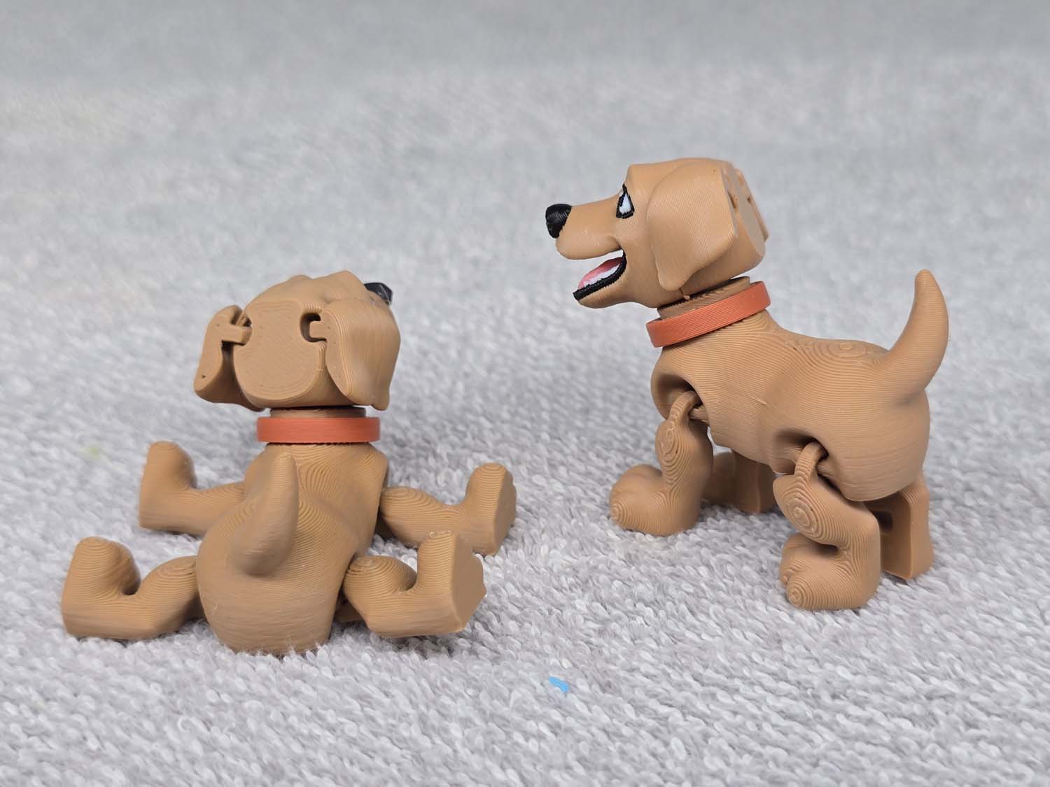 Articulates on all 4 legs, and the tail. Head swivels. Collar spins around neck. Comes in color as shown. Fits in palm of your hand.