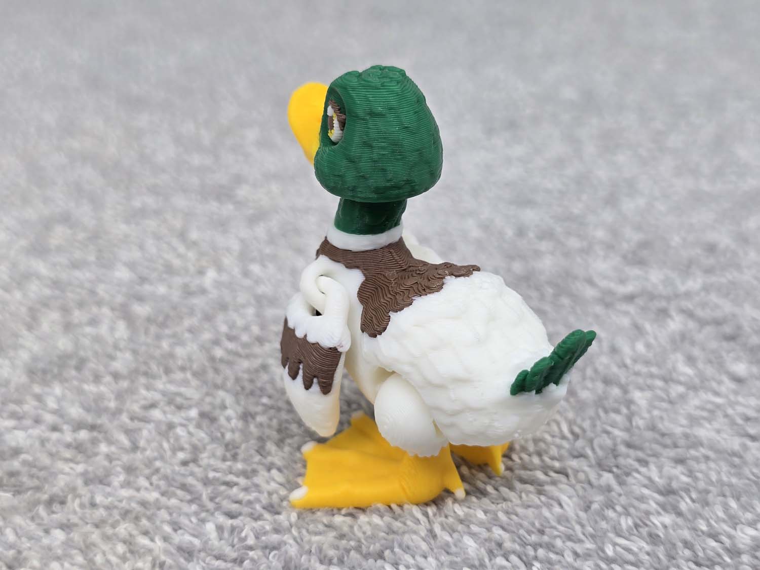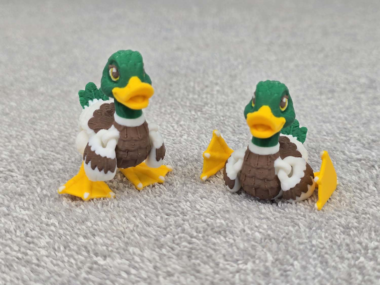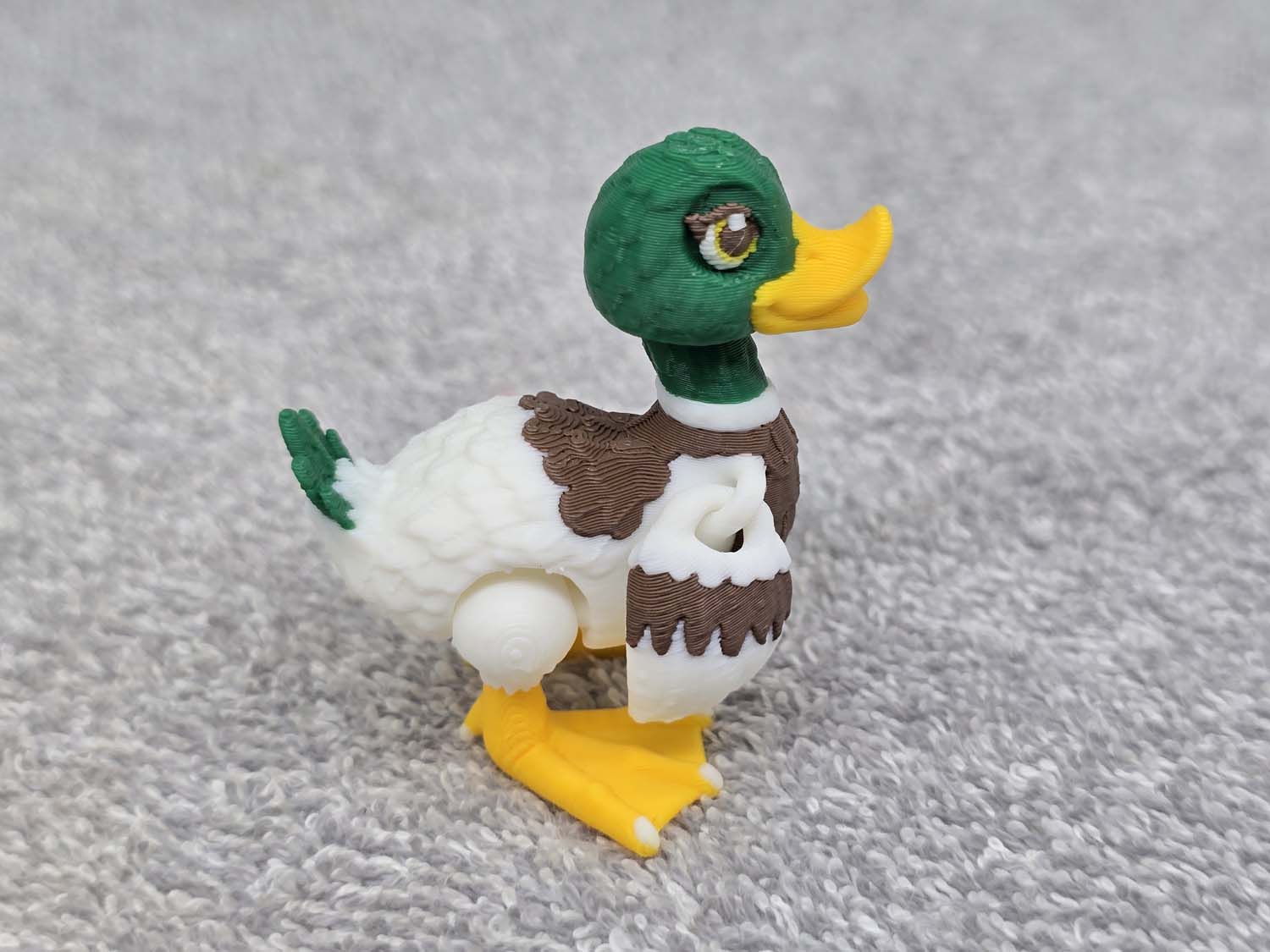 Very nice re-creation of a Mallard Duck. Wings and feet articulate. Head spins 360 degrees. Can pose sitting or standing. Fits in the palm of your hand.