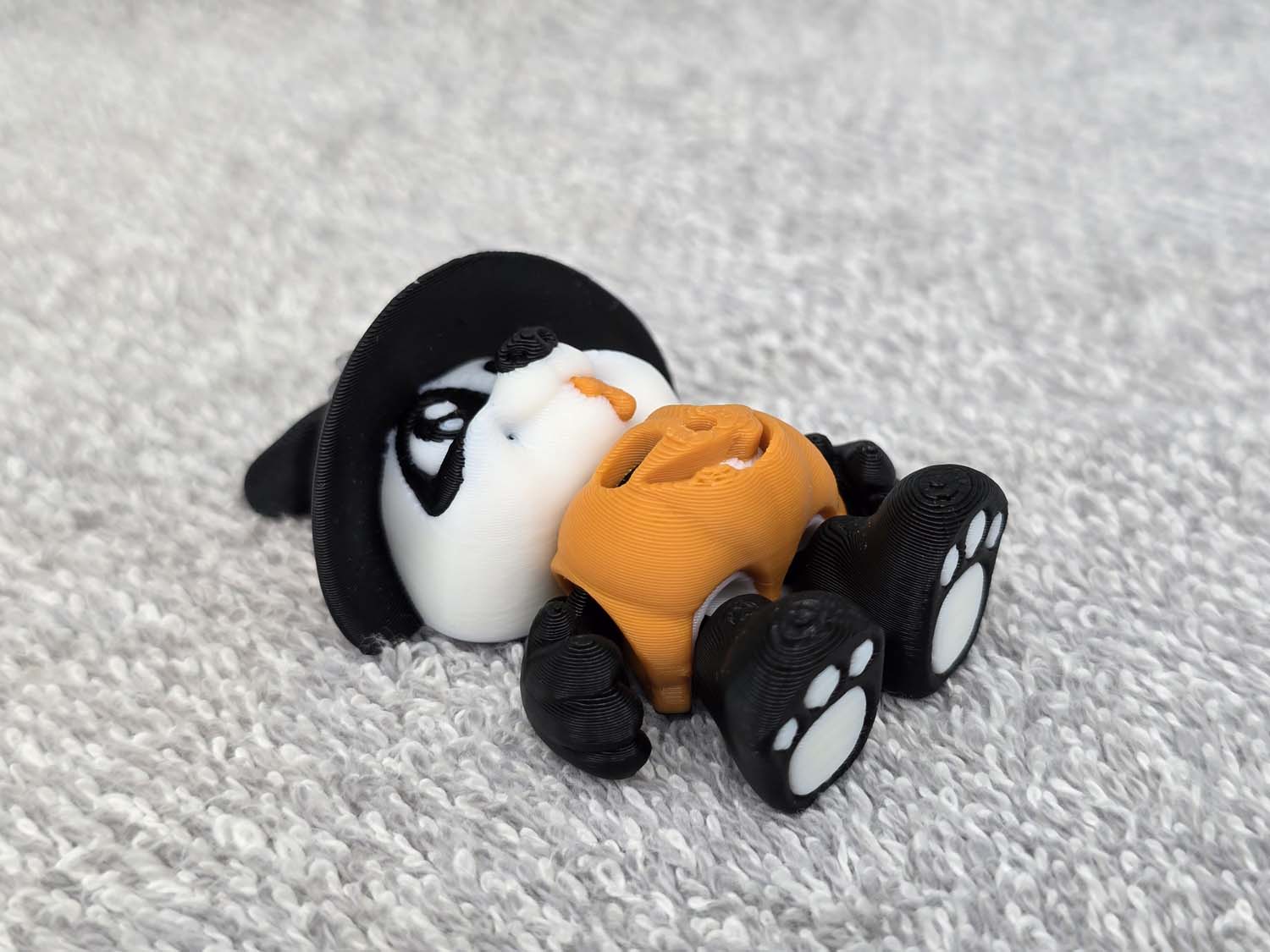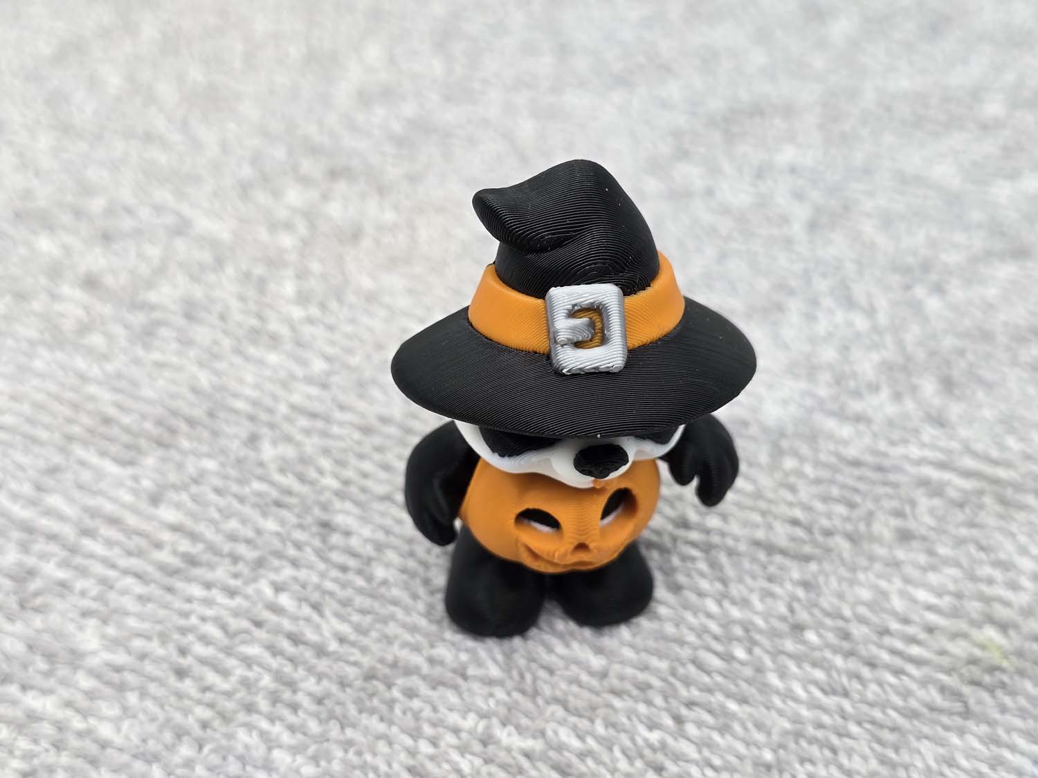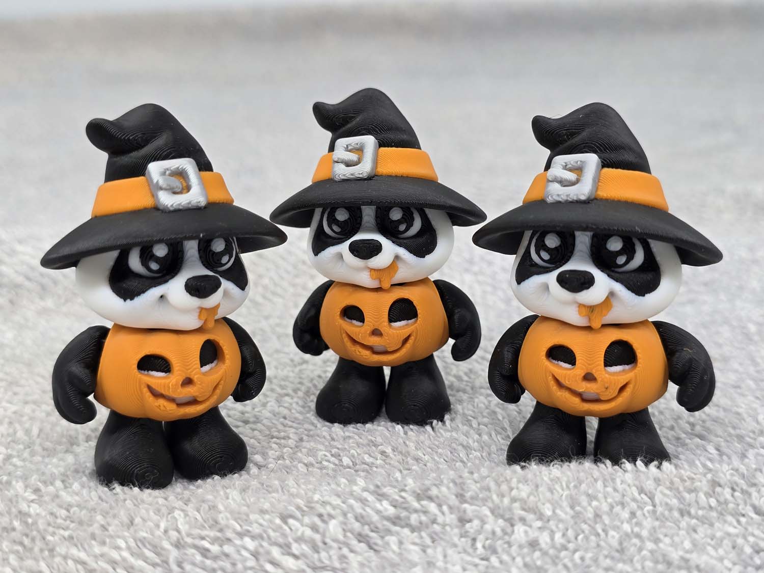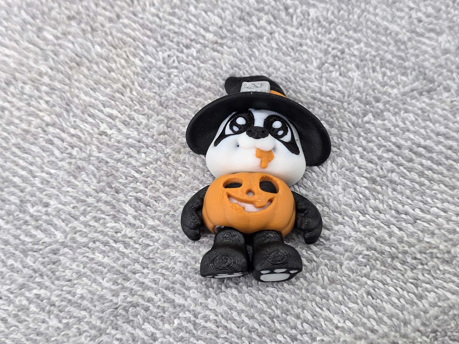 Here is a Halloween favorite, our Panda Witch Little. Super cute with some pumpkin hanging out of his mouth. The panda articulates on the head, arms and legs. Stands up. Fits in the palm of your hand.