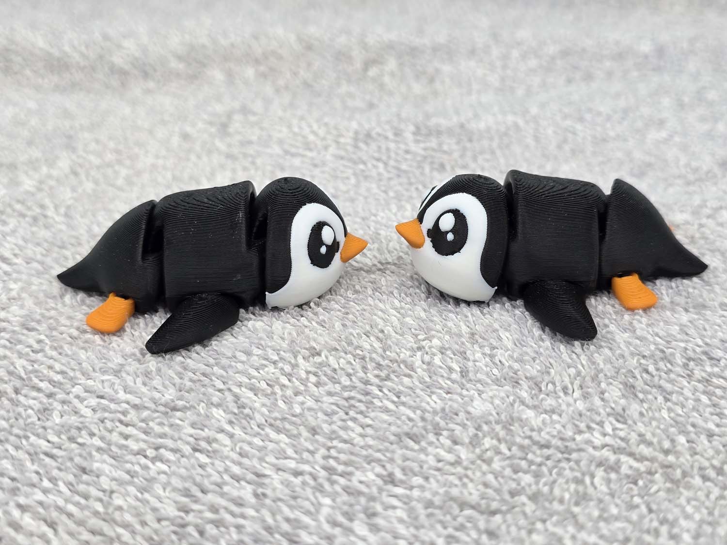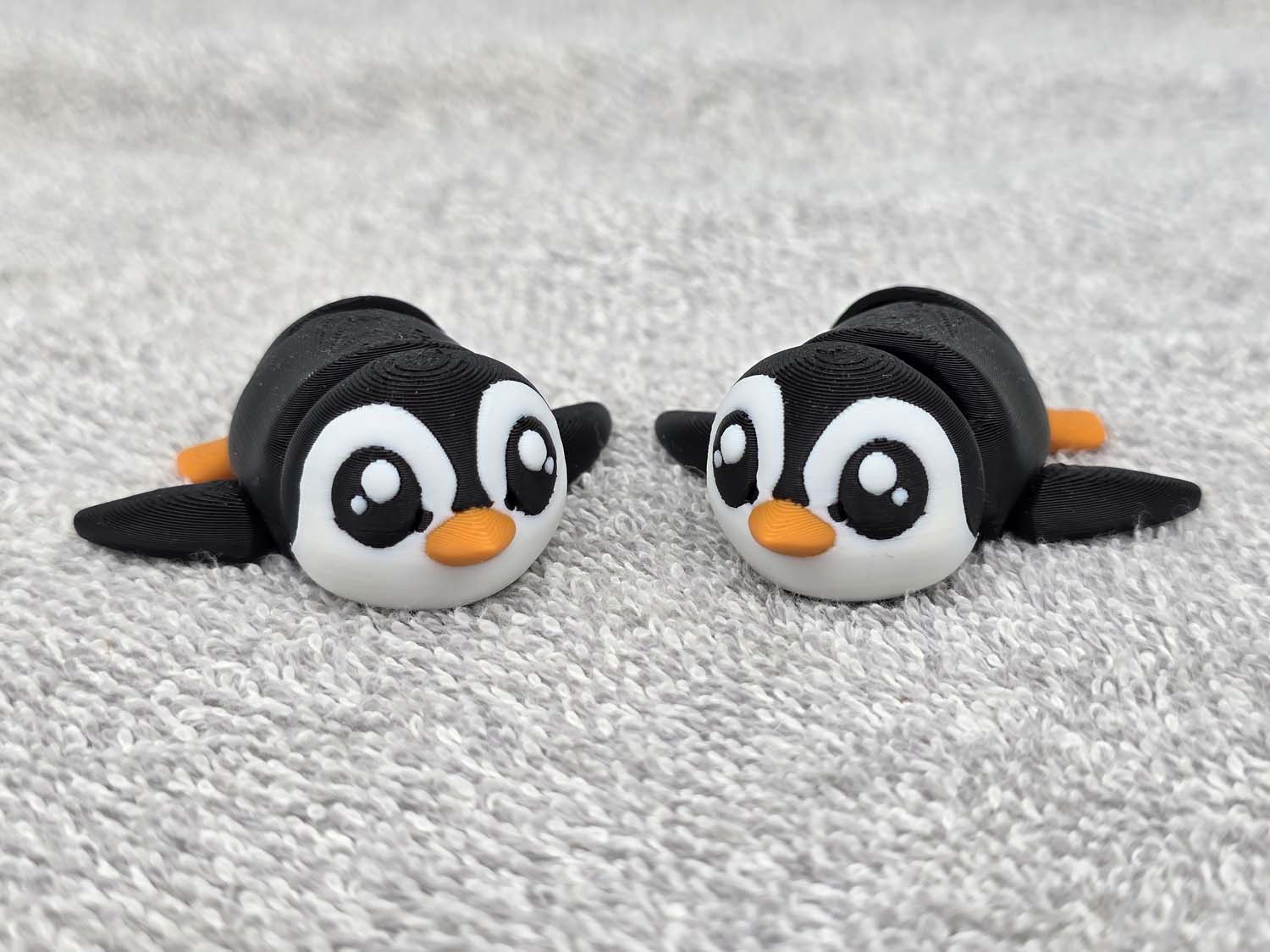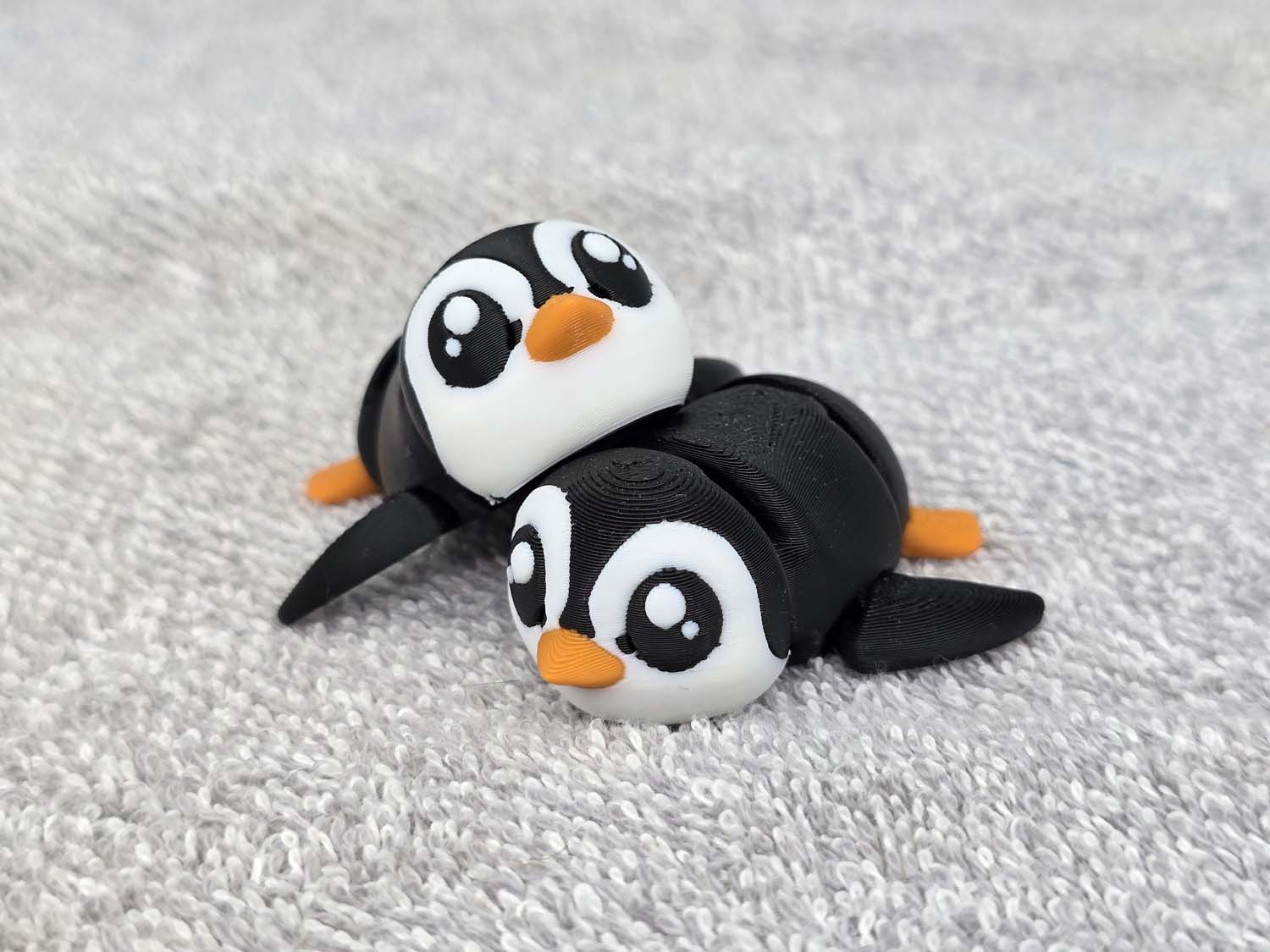 Here is another style of Penguin. This one is laying on its belly as when it slides down the ice. Head, torso, wings and tail articulate. Fits in the palm of your hand.