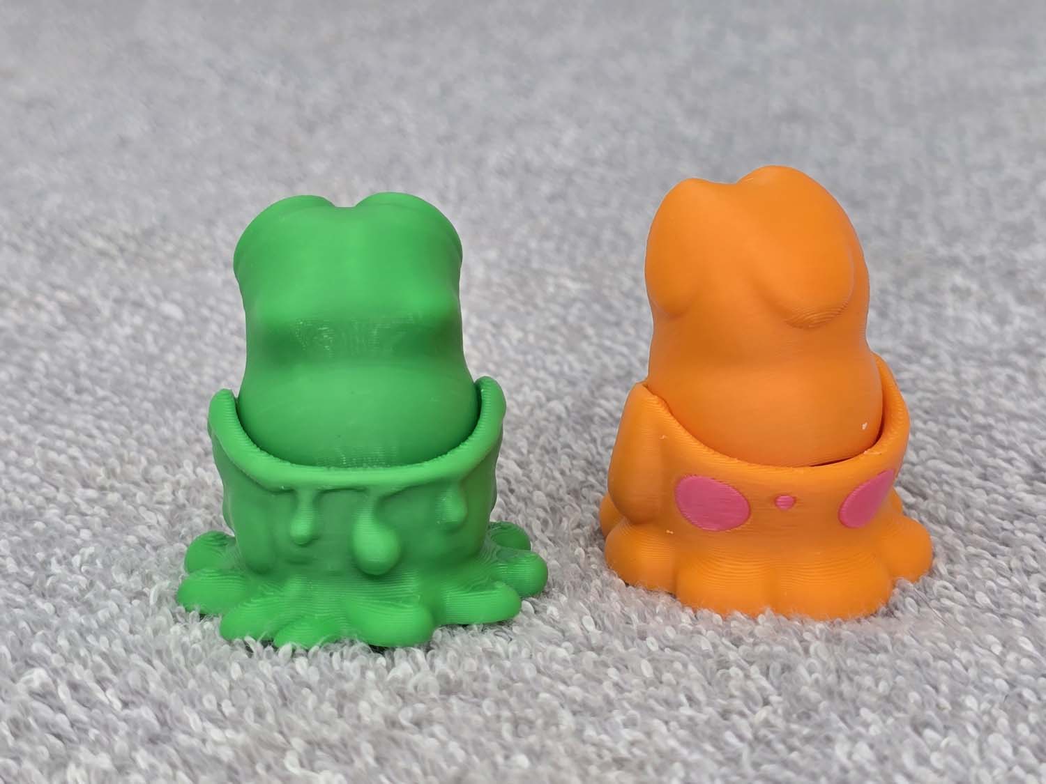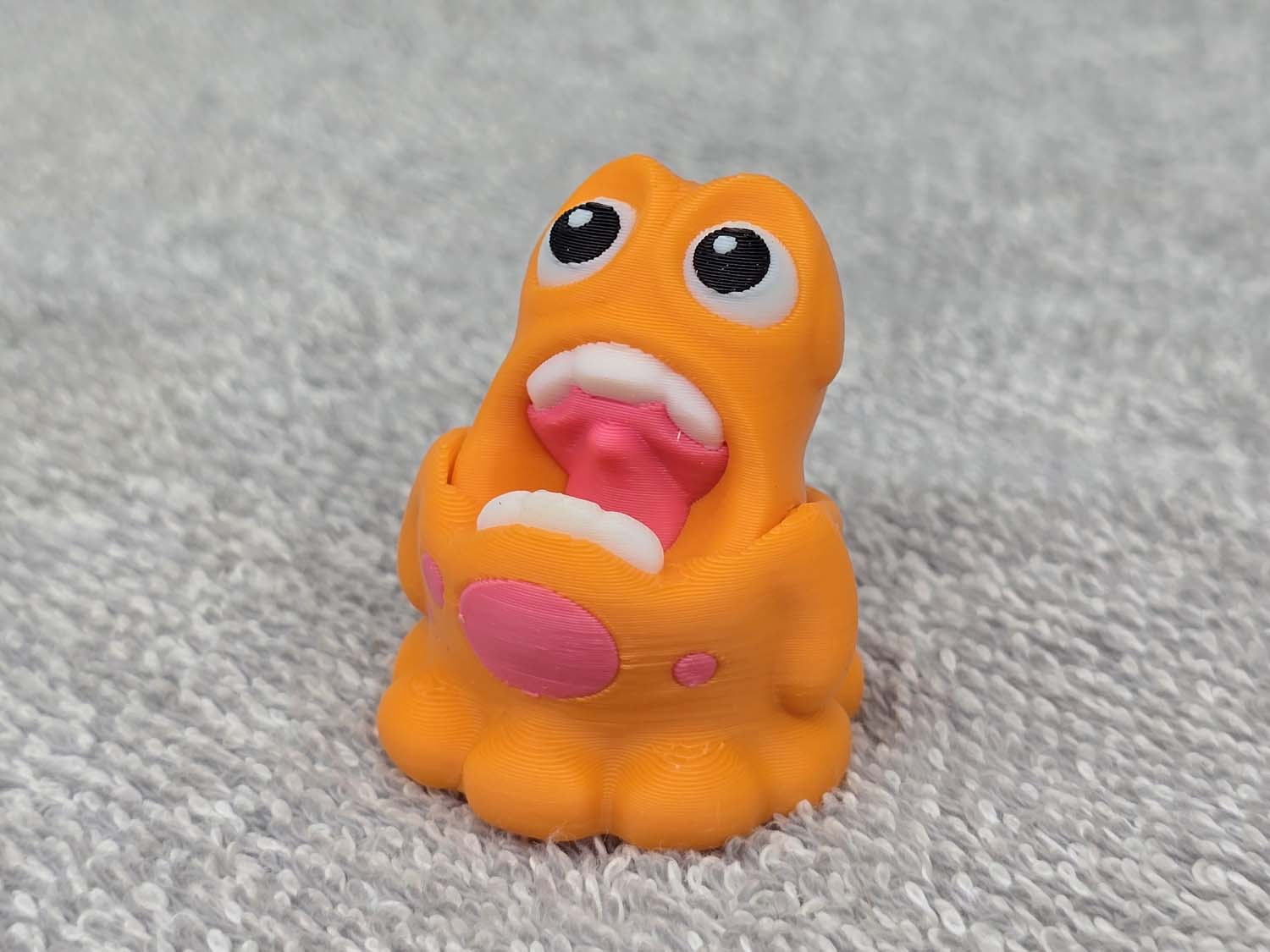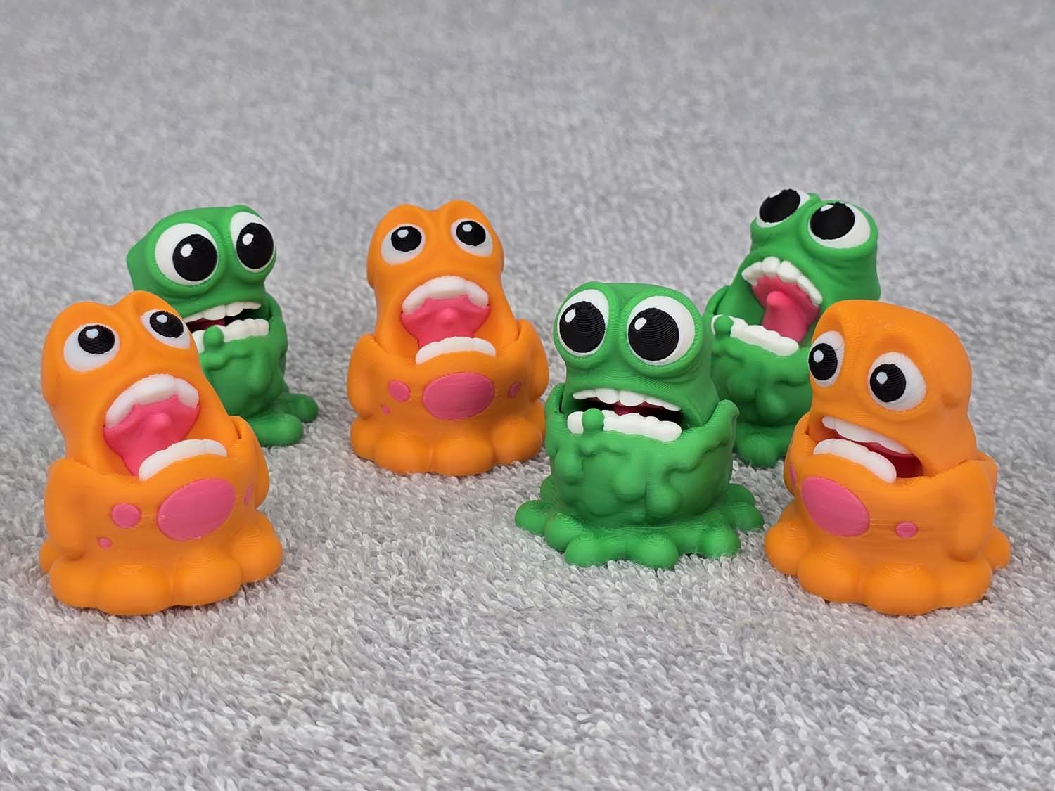 Introducing the Slime Monster little.  The mouths are on a hinge and do a chomp up and down motion when played with.  Fits in the palm of your hand.  Comes in Green or Orange.