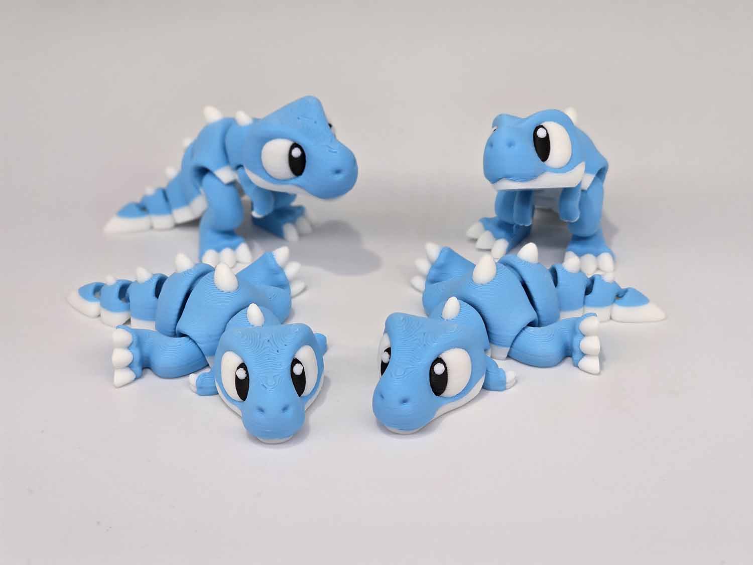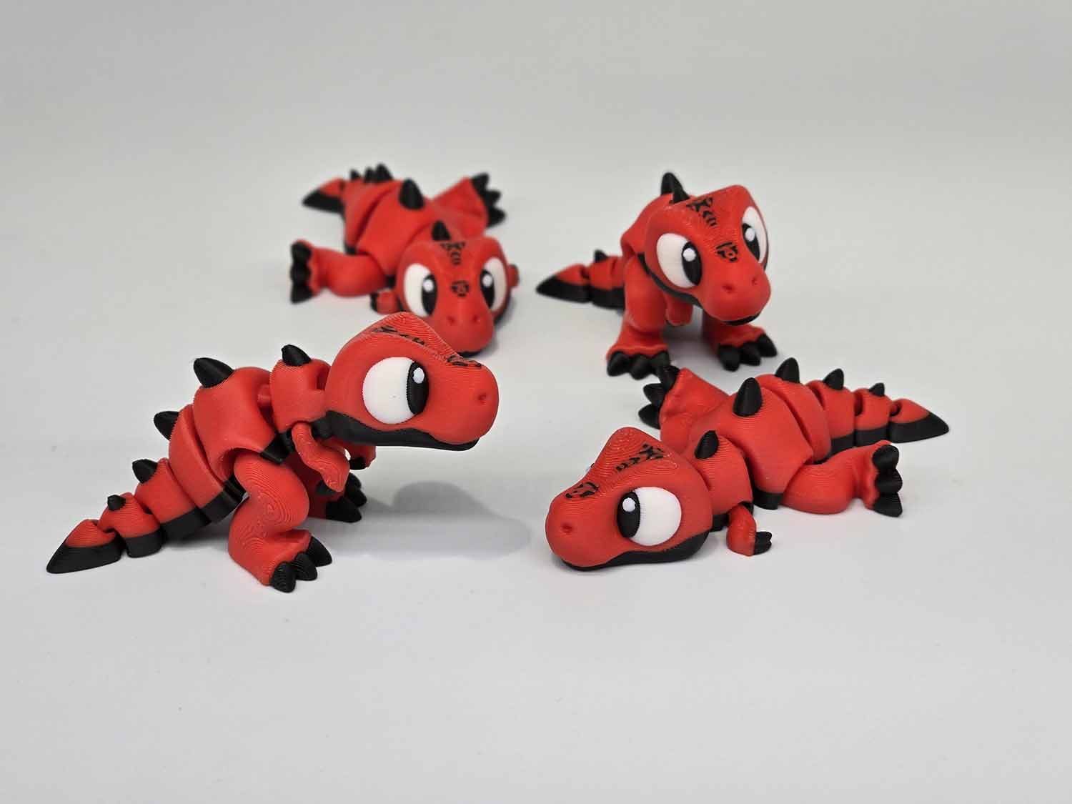 Articulates throughout body down the tail along with the arms and legs. Multiple color combinations. Fits in the palm of your hand.