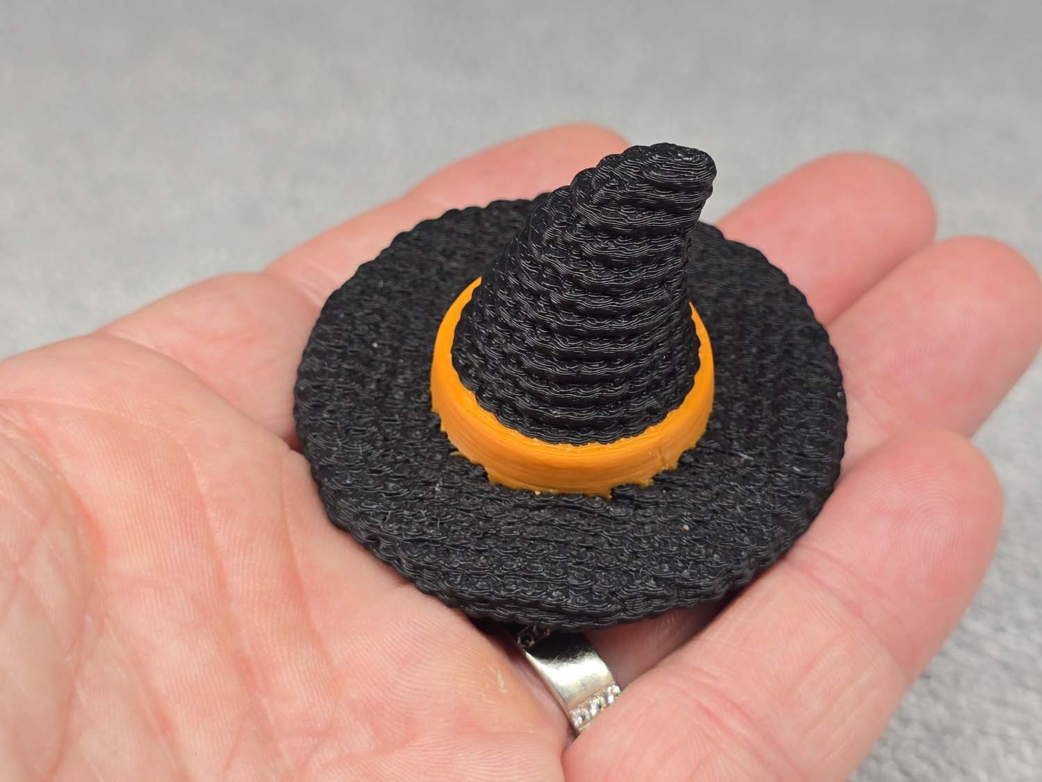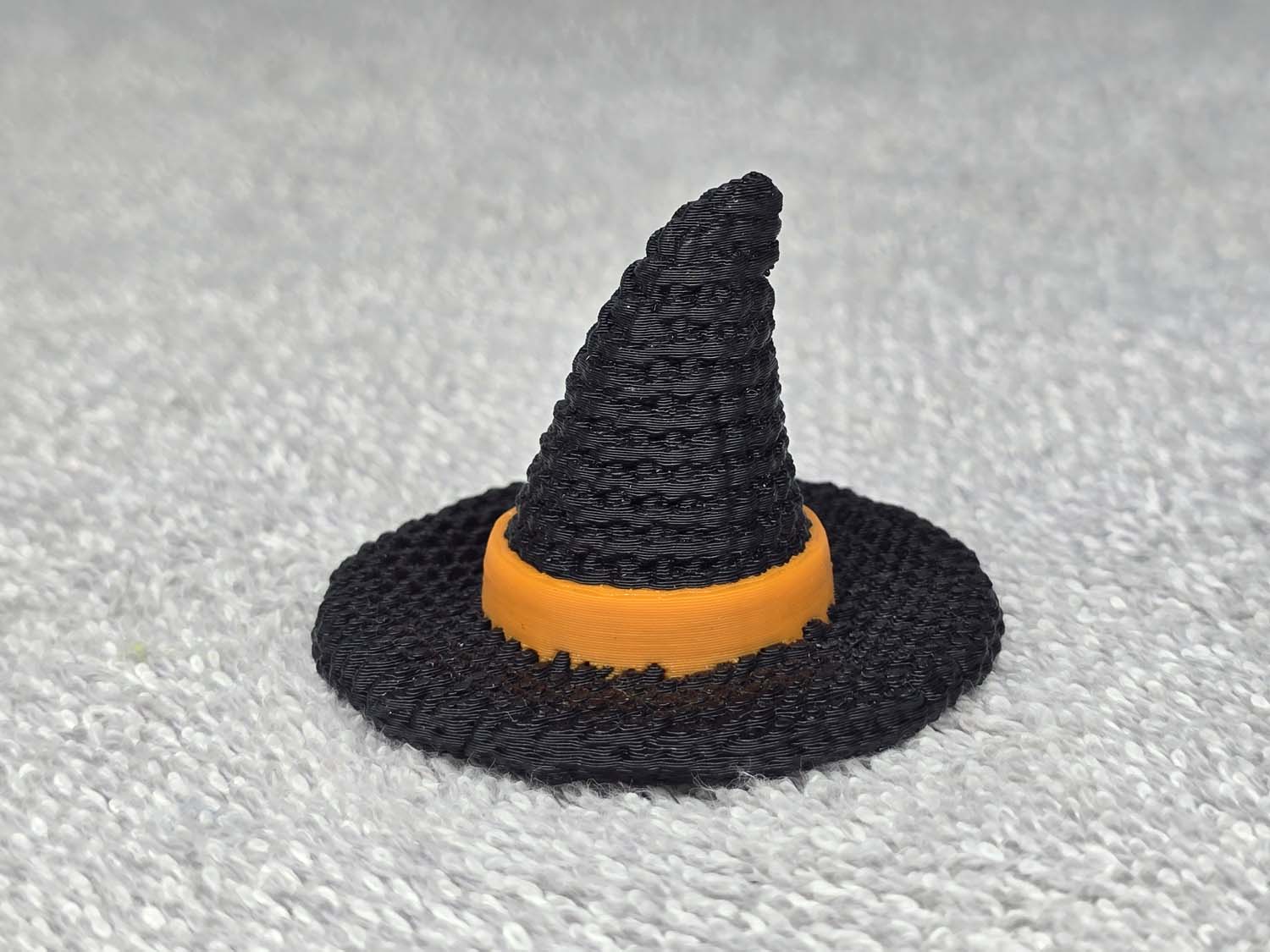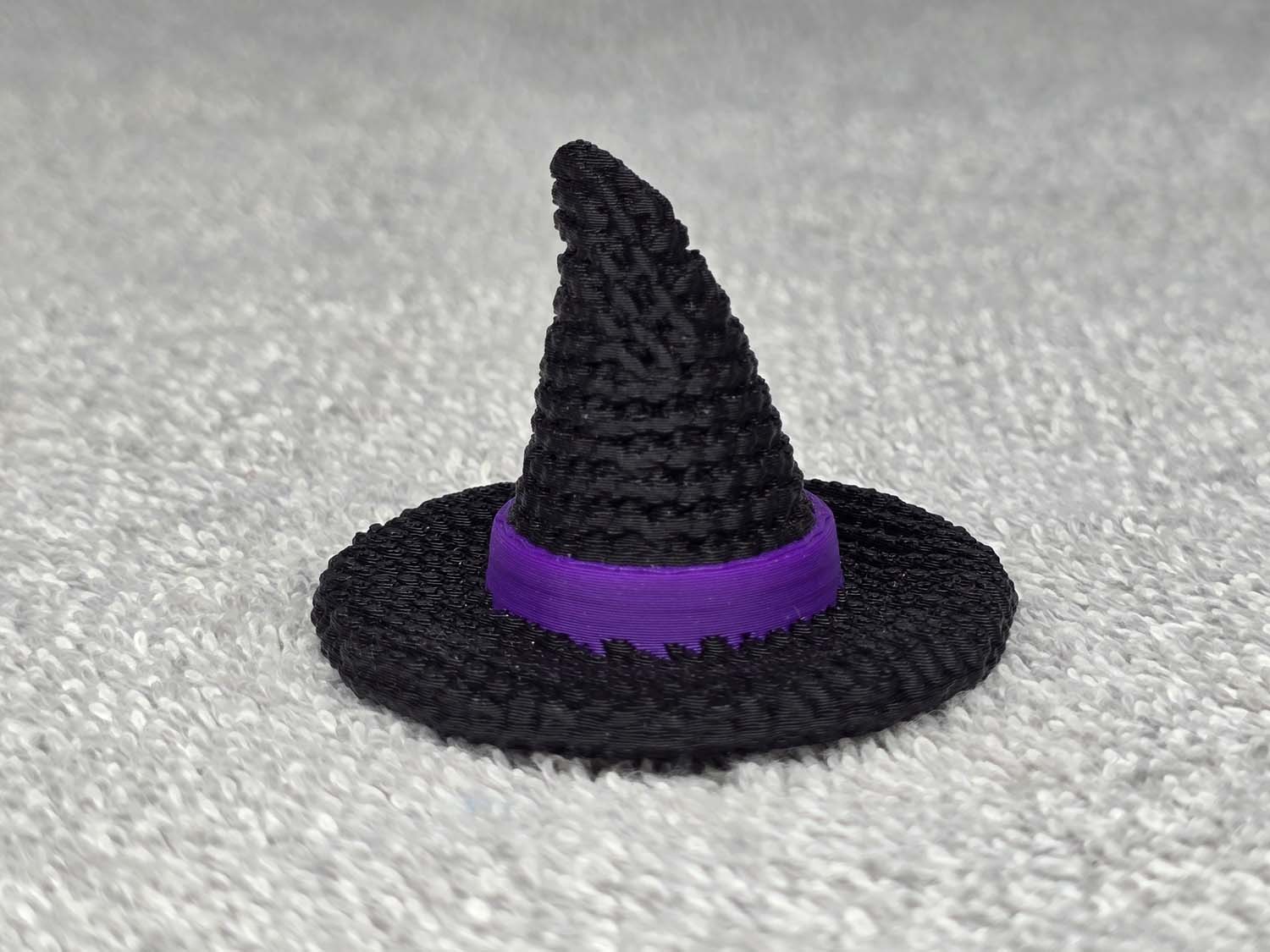 Witches hat with a crochet pattern texture. Comes in multiple colors. Fits in the palm of your hand.