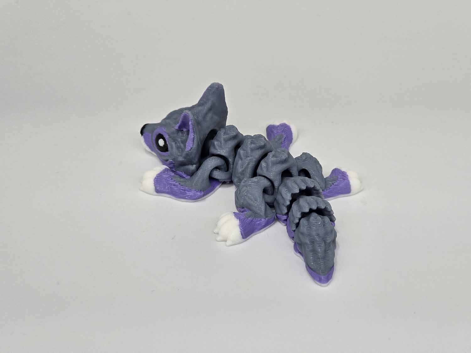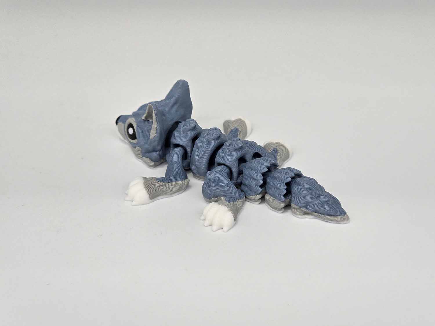 Articulates on the head, all 4 legs and many body sections-all the way to the tail. Fits in the palm of your hand.